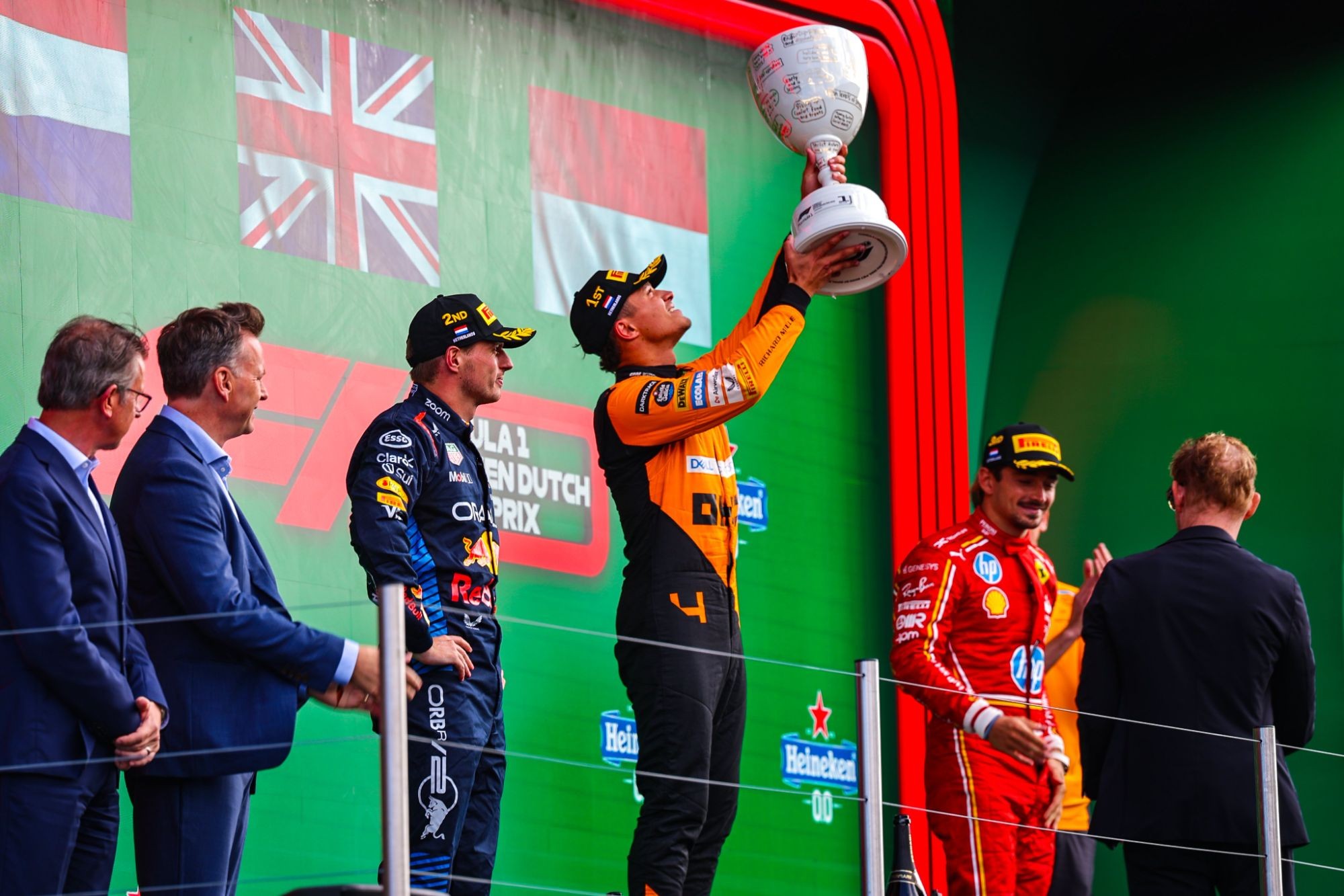 Формула 1. Гран-при Нидерландов. Норрис выиграл гонку, Ферстаппен пришел к финишу вторым, Леклер — третьим