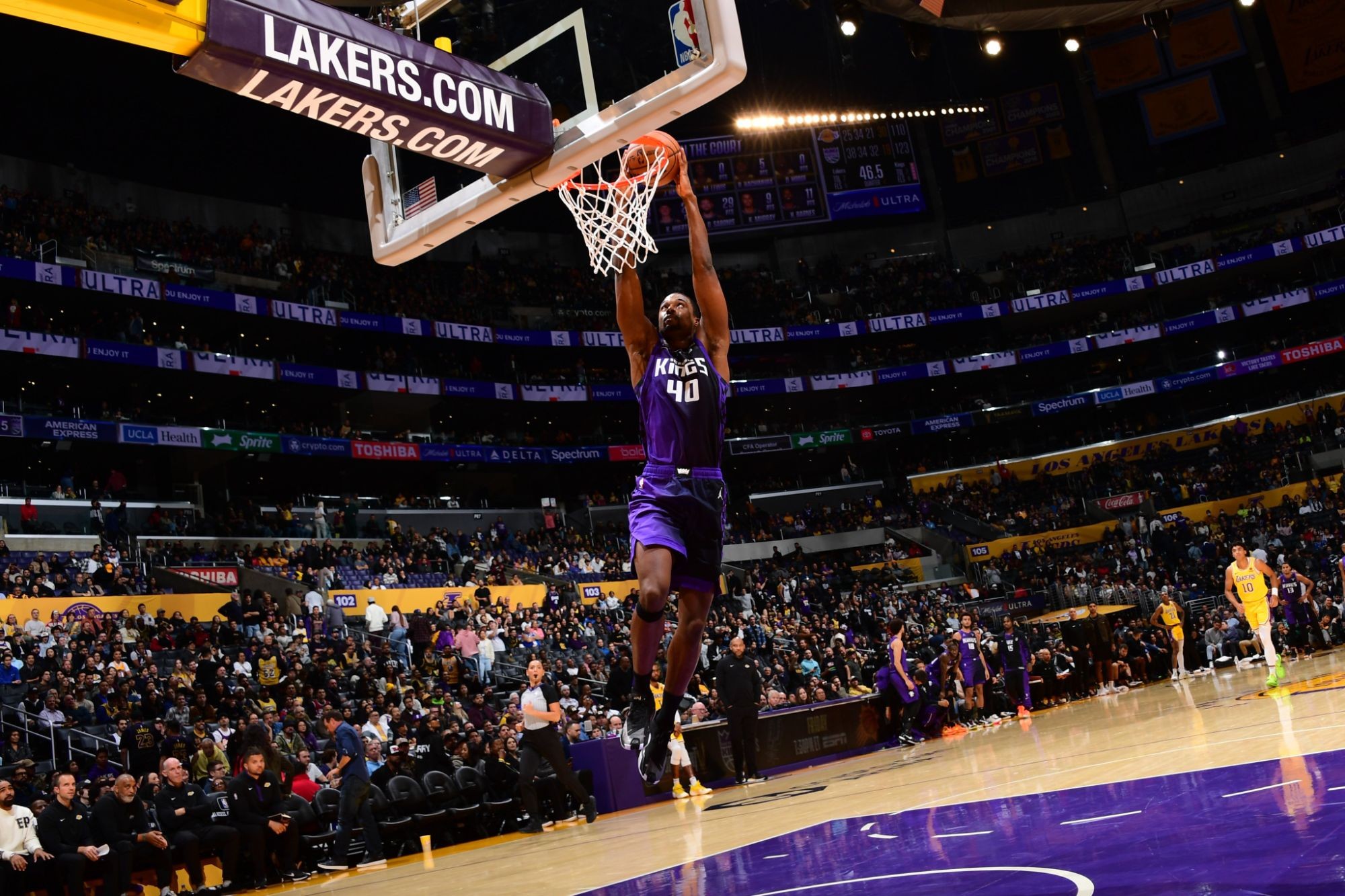 Дабл-дабл в составе победителей оформил Домантас Сабонис — 29 очков и 16 подборов. Еще 28 очков набрал ДеАарон Фокс. За «Лейкерс» дабл-дабл из 28 очков и 10 подборов записал на свой счет Леброн Джеймс. Столько же очков набрал и Д'Анджело Расселл.