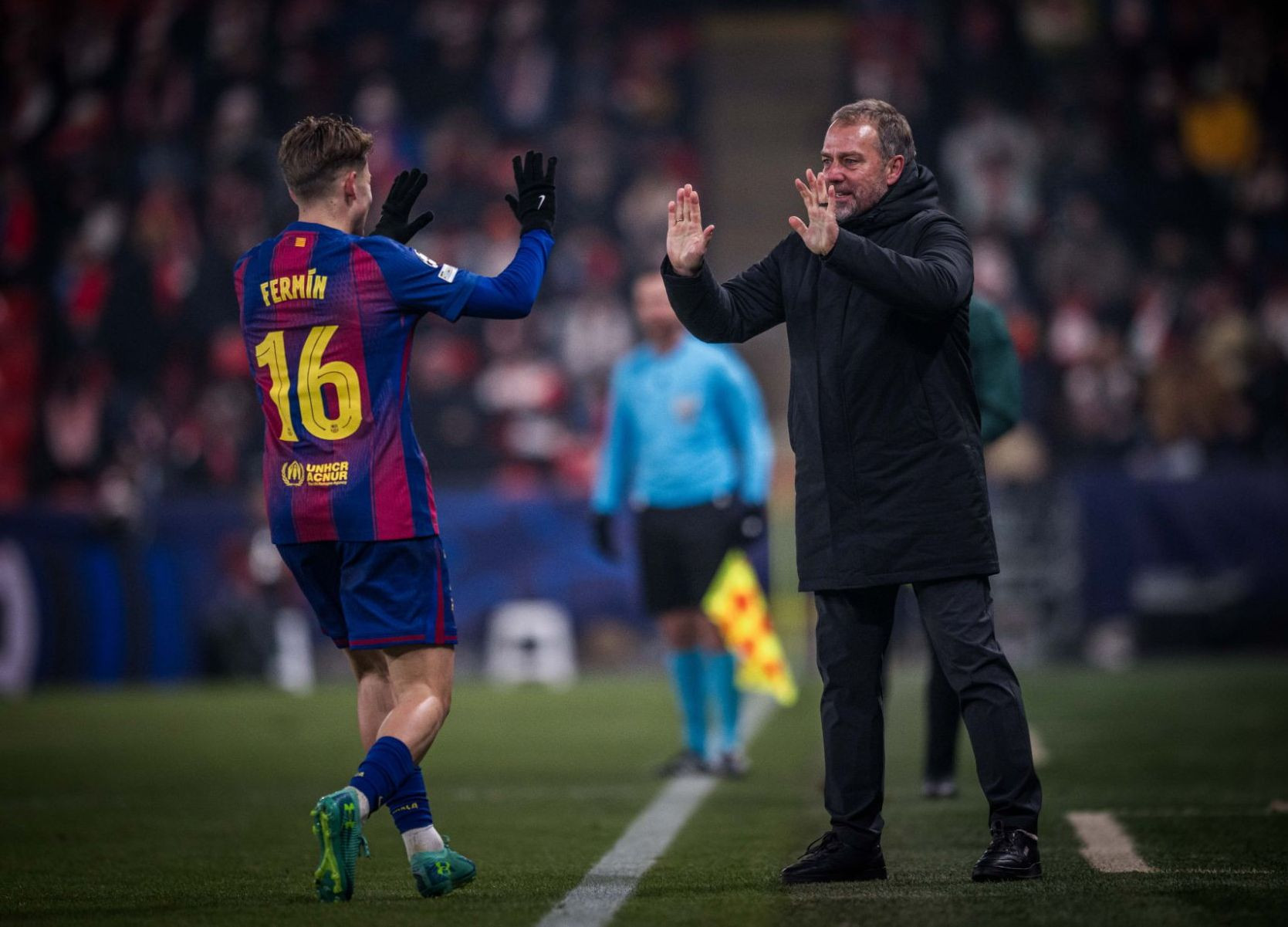 Первый тайм завершился со счетом 2:2. На гол Васила Кушея на 10-й минуте каталонцы ответили дублем Фермина Лопеса (34-я, 42-я минута). На 44-й минуте благодаря автоголу Роберта Левандовского хозяева сравняли счет. Во второй половине еще по голу забили Дани Ольмо (63-я минута) и Роберт Левандовски (71-я минута).
